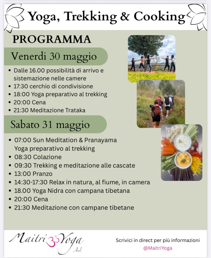 In questi spazi protetti, che scelgo con cura per la loro energia e il loro silenzio, sono luoghi immersi nella natura a contatto con gli elementi dove la pratica dello Yoga diventa un ponte tra albe, tramonti, cascate, boschi, fiumi e mare, Con oltre vent’anni di esperienza e il metodo Maitri (amorevole gentilezza), ti accompagno a riconnetterti con l’intelligenza innata del corpo e con la tua parte più profonda, permettendo a mente e spirito di ritrovare la loro naturale armonia.